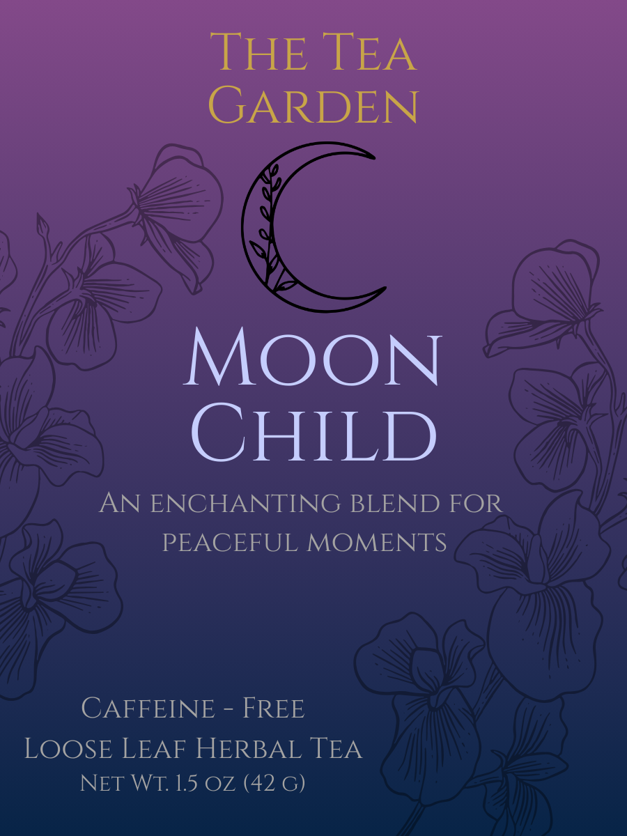 An enchanting blend featuring butterfly pea flower, peppermint, and subtle citrus. Brewed hot or iced, Moon Child shifts from deep blue to violet with a squeeze of lemon. Naturally caffeine-free, this tea is as calming as it is visually stunning. A playful yet serene ritual in every cup.